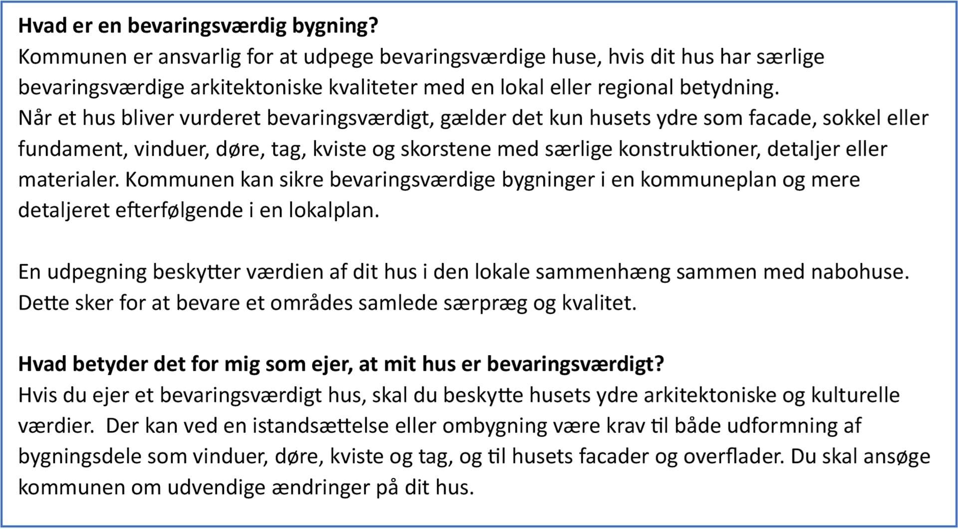 Bygninger med højest bevaringsværdi (SAVE-værdi 1-4) har været optaget i kommuneplanen siden.