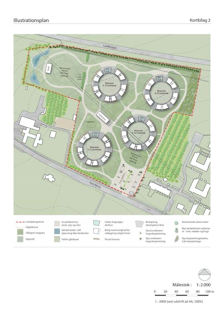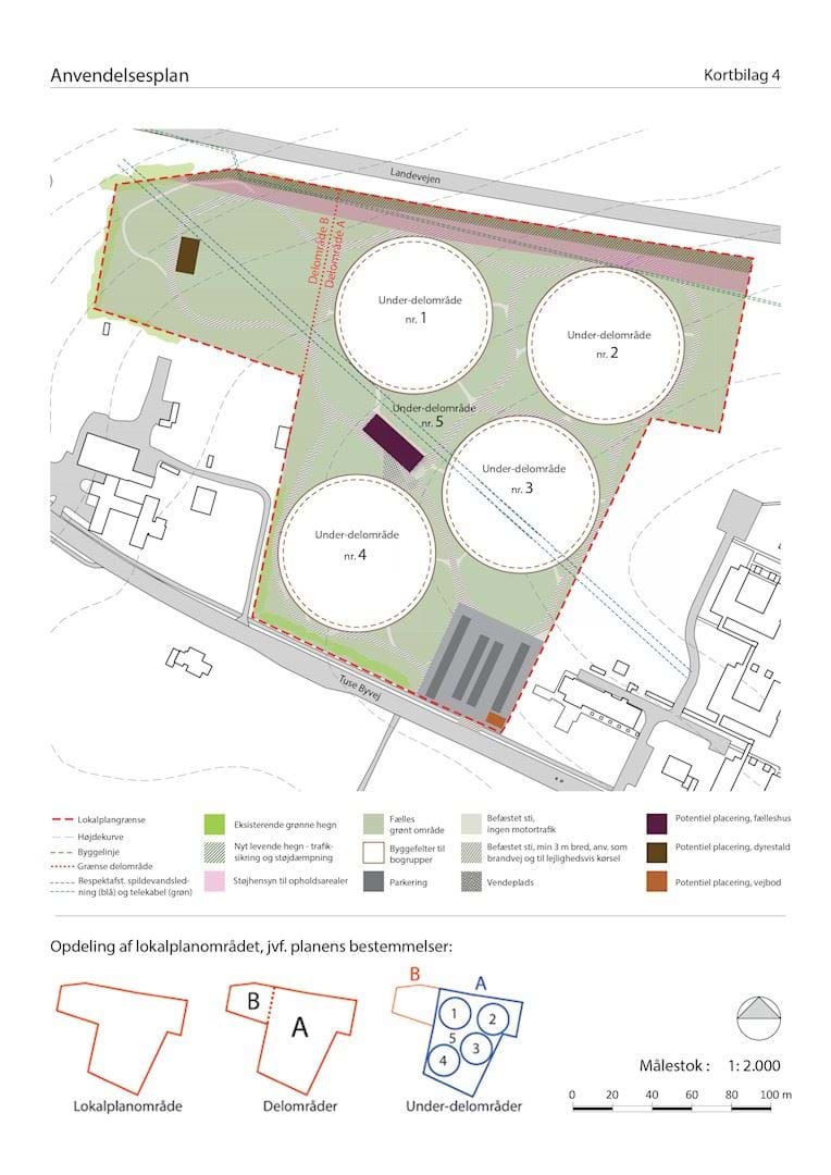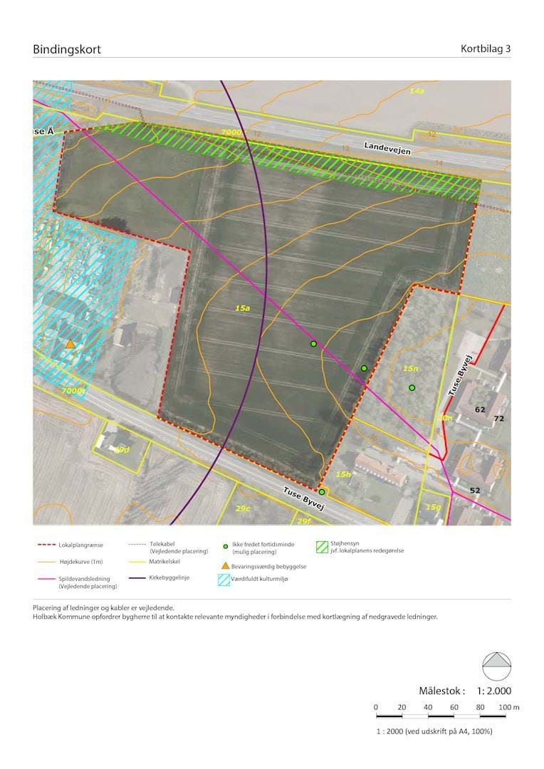 Kortbilagene herunder hører til lokalplanens bestemmelser og er juridisk bindende i forhold til de fremtidige forhold i planområdet.