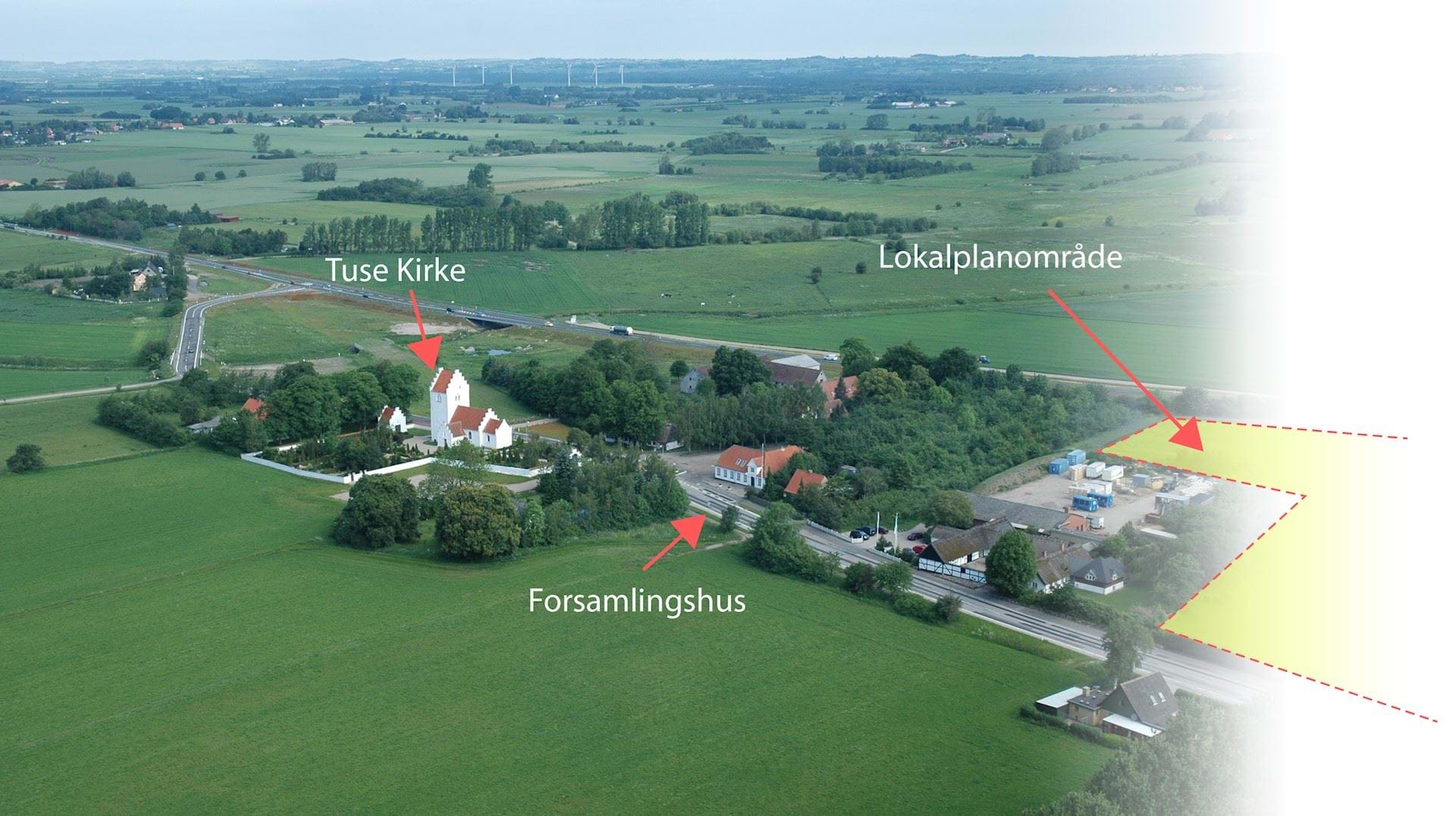 Lokalplanområdet ligger delvist indenfor kirkeomgivelserne til Tuse Kirke. Lokalplanen giver mulighed for en maksimal bygningshøjde på 8,5 m, hvilket også er den tilladelige grænse indenfor kirkebyggelinje. Byggeriet vil på den baggrund ikke påvirke oplevelsen af kirken væsentligt. Der ligger desuden anden eksisterende bebyggelse mellem kirken og det kommende bofællesskab.