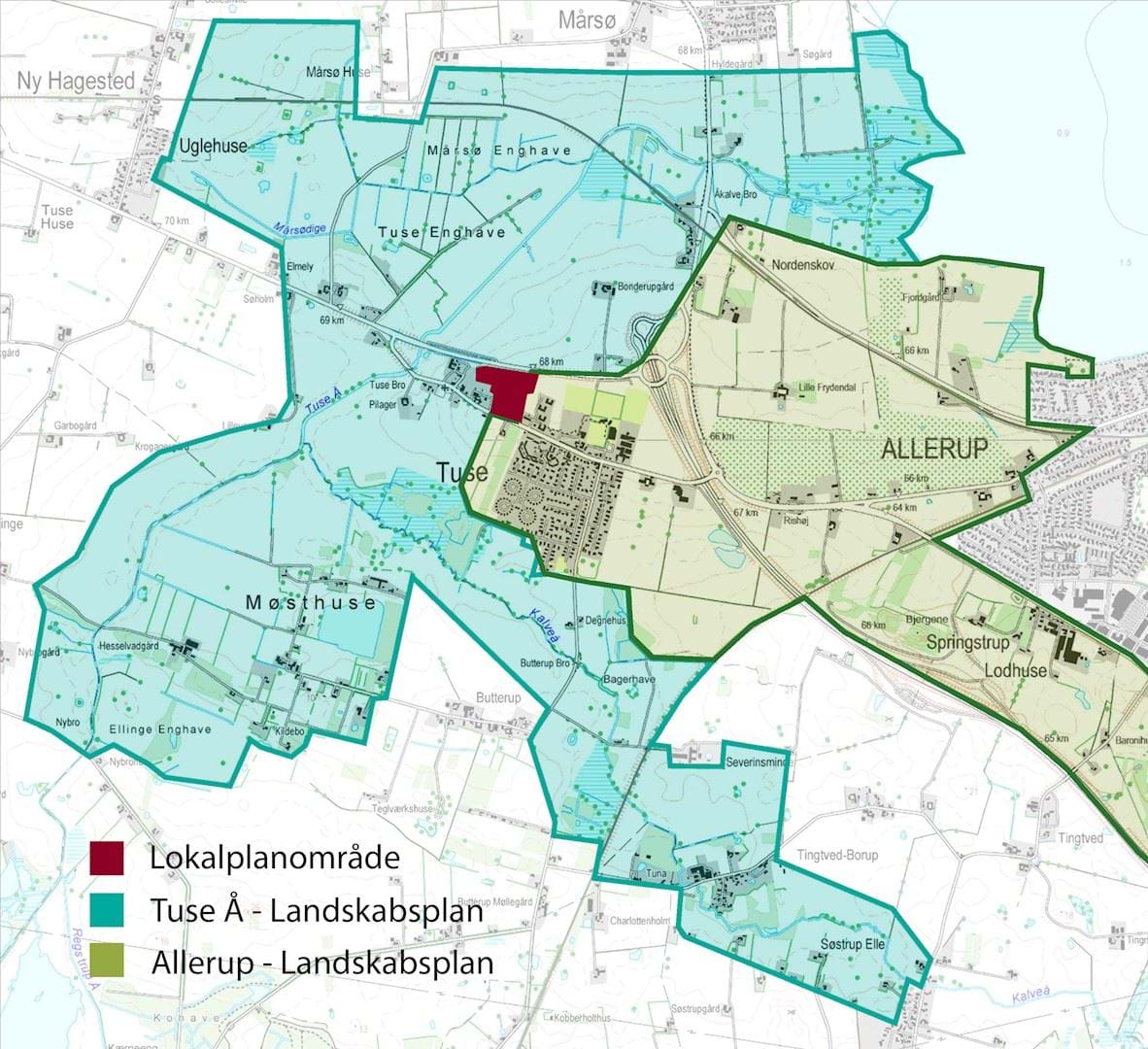 Lokalplanområdet er beliggende, hvor to udpegede landskabsområder, henholdsvist Tuse Å og Allerup grænser op til hinanden.