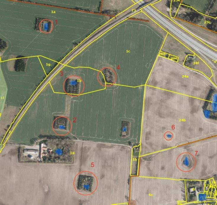 I tilknytning til lokalplanområdet er en række mindre søer. De fleste søer er beskyggede, har stejle anlæg og er eutrofieret(næringsbelastet) og vurderes at have mindre betydning for bilag 4-arter som Spidssnudet Frø og Stor Vandsalamander. Sø 1 og særlig sø 7 vurderes at kunne være levested for bilag 4-arterne spidssnudet frø og stor vandsalamander. De øvrige søer vurderes ikke at være egnede levesteder for disse arter.