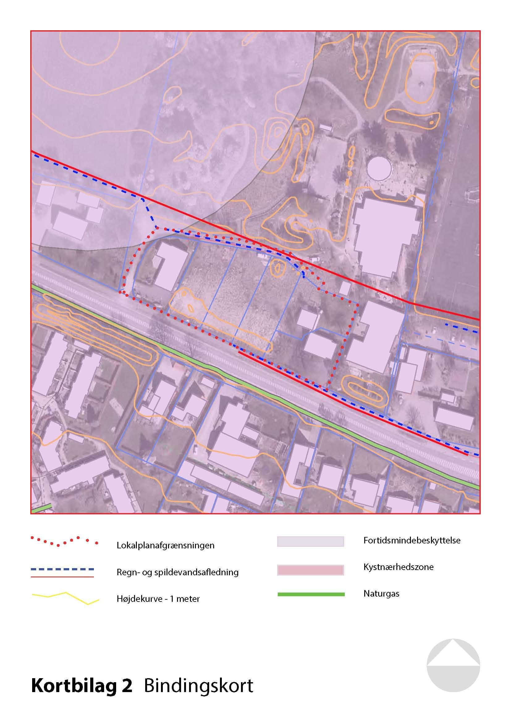 Kortbilagene herunder hører til lokalplanens bestemmelser og er juridisk bindende i forhold til de fremtidige forhold i planområdet.