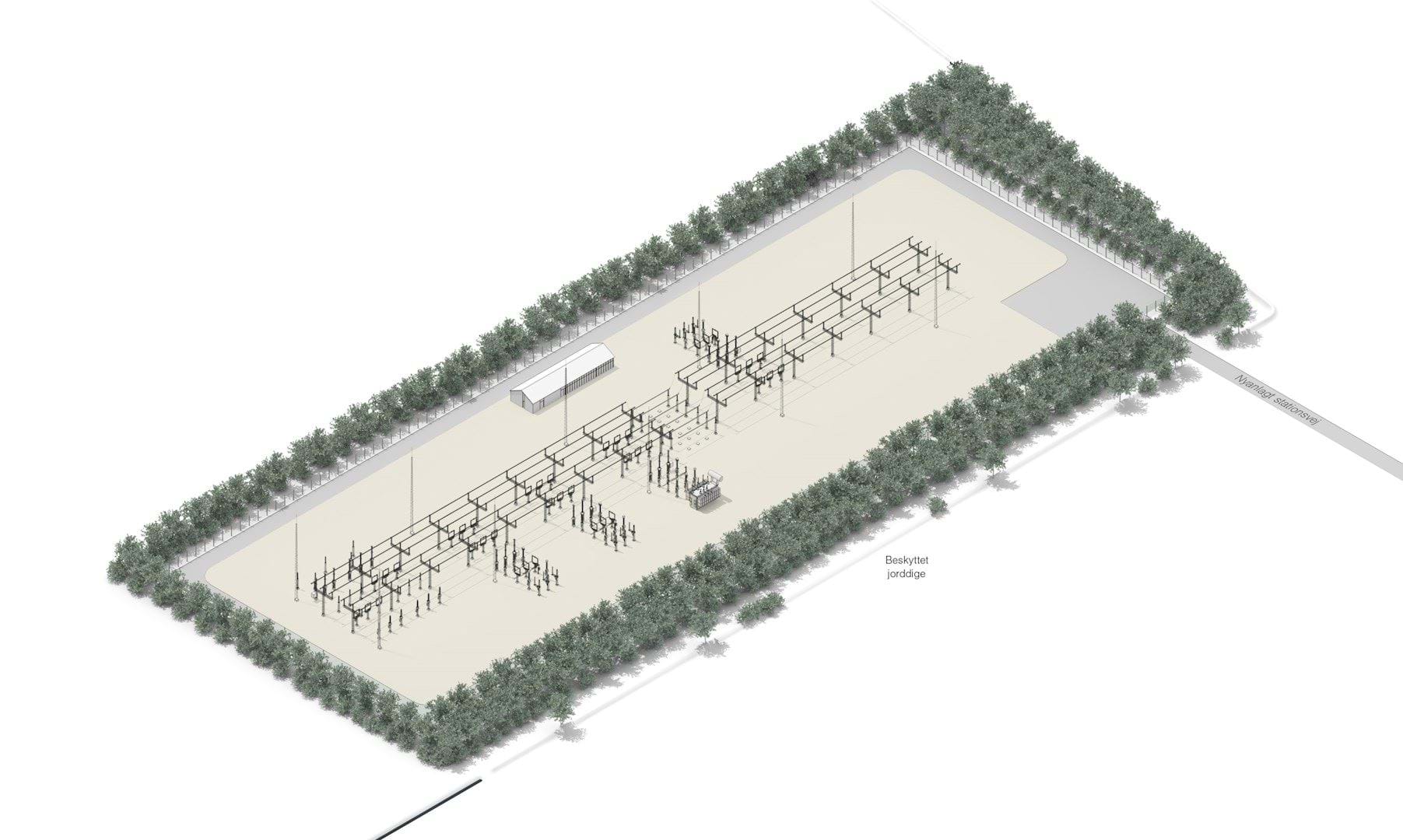 Byggefeltets størrelse giver mulighed for, at højspændingsstationen på et senere tidspunkt kan udvides yderligere. Fritstående tekniske anlæg, herunder transformere, filtre, samleskinner, kompenseringsspoler medregnes ikke i det angivne maksimale bebyggelsesareal. Eltekniske installationer må opføres i op til 12 meters højde, mens lynfangsmaster må opføres i op til 25 meters højde.