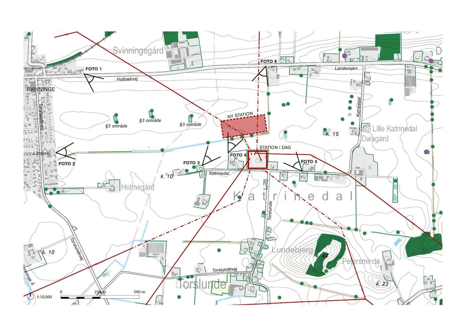 Den eksisterende højspændingsstation syd for lokalplanområdet ligger tæt opad eksisterende naboer. Ved etablering af ny højspændingsstation vil Energinets eksisterende anlæg blive saneret. Samtidig vil Energinets nærmeste 3-4 master i alle tre retninger i området bliver taget ned, og blive kabellagt (se billede 2). Landskabet omkring Katrinedal vil dermed i langt mindre grad være præget af luftledninger og master. Disse forhold vedrørende sanering og kabellægning er ikke en del af lokalplanen, men foretages af Energinet. Andels transformerstation og elmaster vil fortsætte med at eksistere.