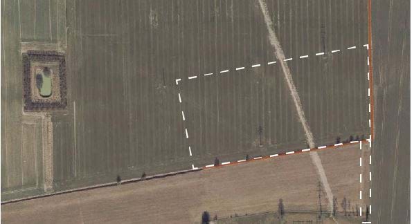 Ovenfor er illustreret jorddiget med en lysebrun streg, der ligger op ad planområdets sydlige matrikelskel.