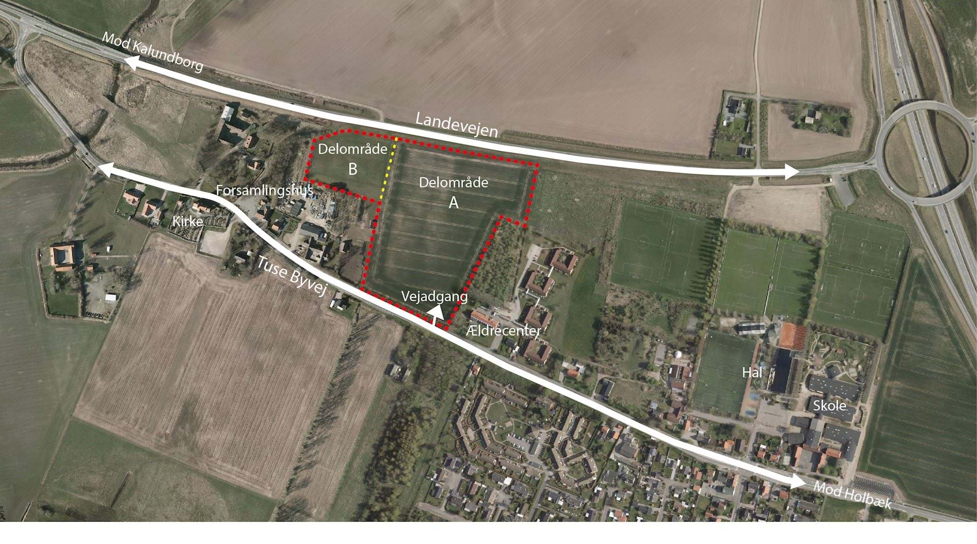Lokalplanområdet udstykkes fra matrikel 15a. Planlægningen omfatter et areal på ca. 5 ha og er beliggende nordvest for Tuse by, inden Gl. Tuse, mellem Landevejen og Tuse Byvej. Placeringen af bofællesskabet er med til at binde Tuse by sammen med området omkring Tuse Kirke uden at forstyrre de landskabstræk og kig, der findes syd for Tuse Byvej.