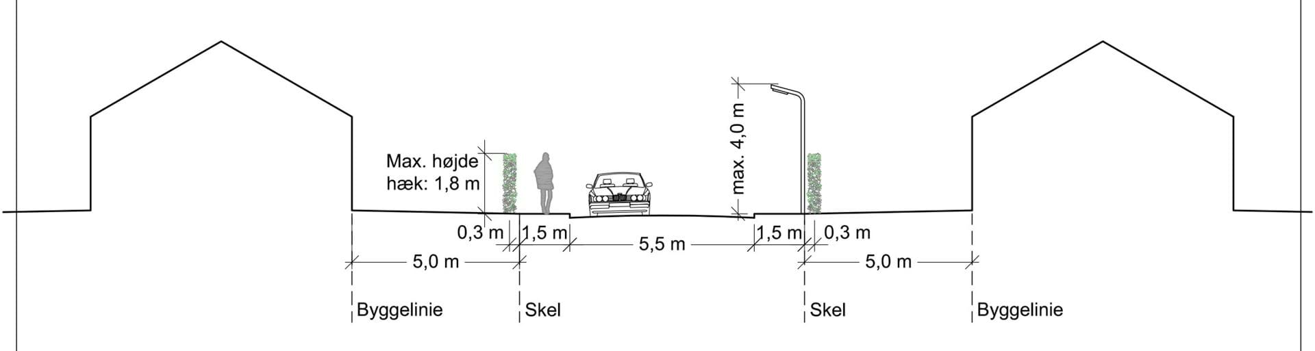 Med lokalplanen er fastsat byggelinjer langs de primære adgangsveje, der sikrer, at bebyggelsen vil medvirke til at skabe rumligt veldefinerede forløb.