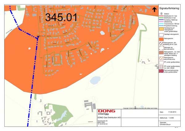 Kort over godkendt naturgasforsyningsområde.