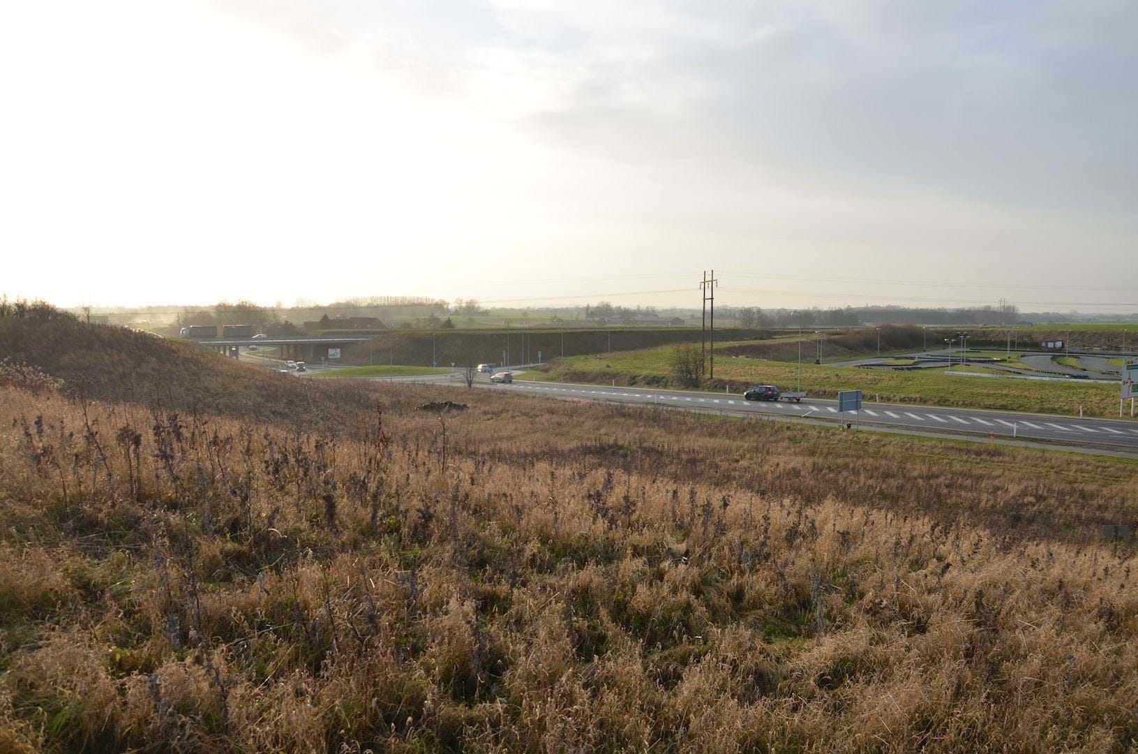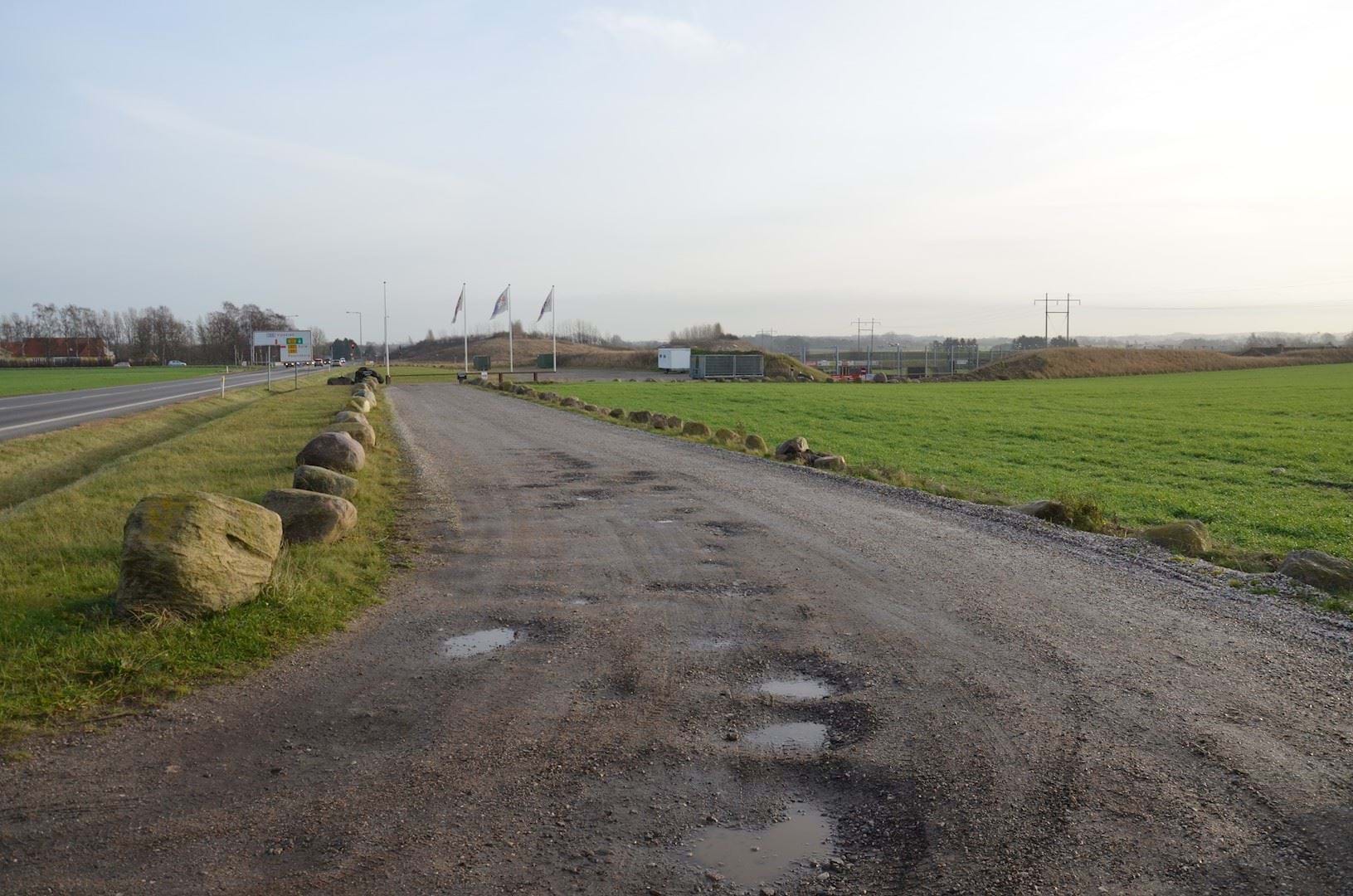 Arealet ligger ca. 500 meter syd for landsbyen Tveje-Merløse. Der er indblik over åbne marker til Tveje-Merløse Kirke fra Omfartsvejen og Valdemar Sejrsvej. Fra motorvejen forhindrer voldene omkring til- og frakørselsramperne personbilers indblik til kirken bortset fra et kort stykke ved motorvejsbroen over anlægget med de to rundkørsler. På dette sted ligger gokartbanen ikke i indblikslinjen. Fra overetagen af en dobbeltdækker-bus, er der fortsat indblik fra motorvejen til kirken.