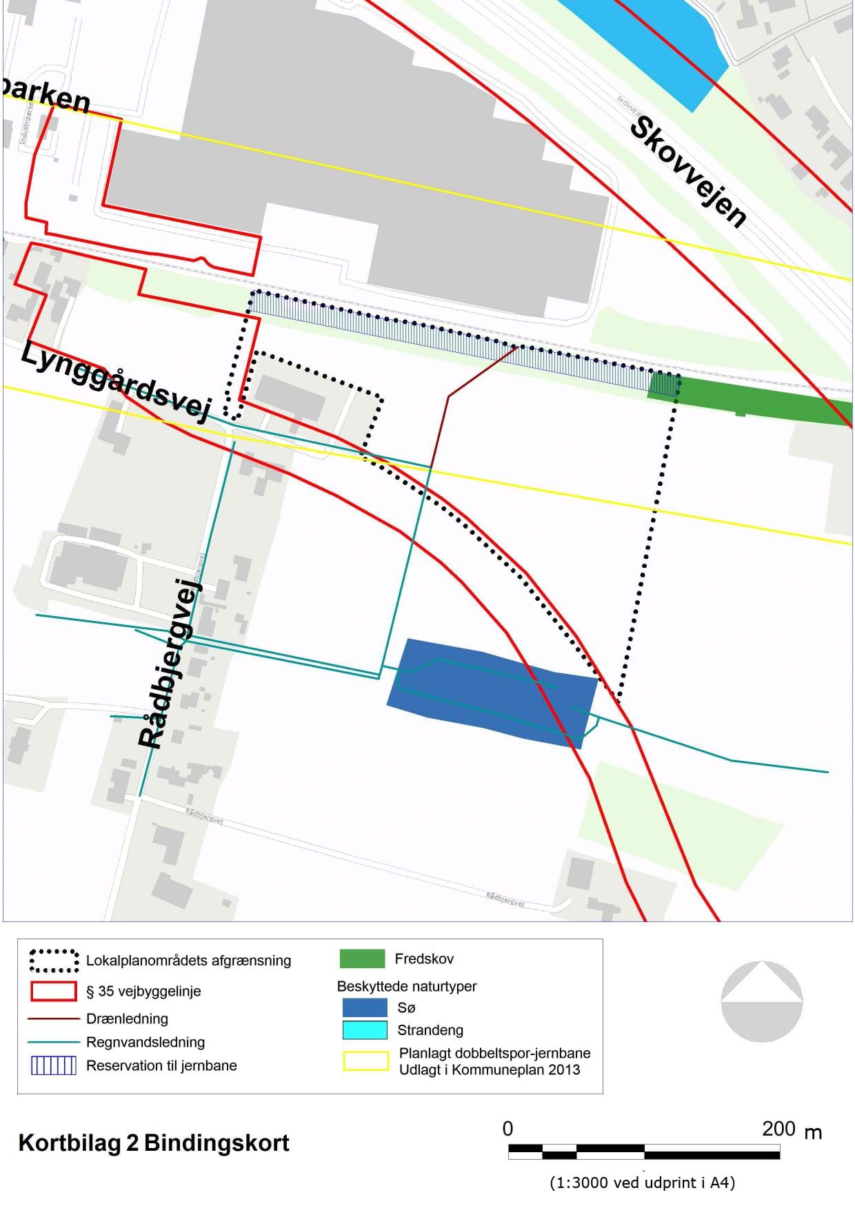 Kortbilagene herunder hører til lokalplanens bestemmelser og er juridisk bindende i forhold til de fremtidige forhold i planområdet.